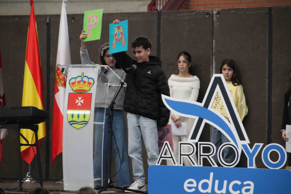 Arroyo de la Encomienda se llenó el pasado viernes 30 de enero de mensajes de esperanzas en la celebración conjunta del Día Escolar de la Paz y la No Violencia. Cerca de 300 alumnos de 5º de Educación Primaria de los centros escolares del municipio, CEIP Kantica, CEO Atenea, CEIP Elvira Lindo, CEIP Margarita Salas y CEIP Raimundo de Blas se desplazaron hasta Arroyo Esfera para exponer su compromiso con un mundo más justo y pacífico. A lo largo del acto, los alumnos tomaron la palabra para compartir frases, poemas y reflexiones sobre el respeto, y la solidaridad.