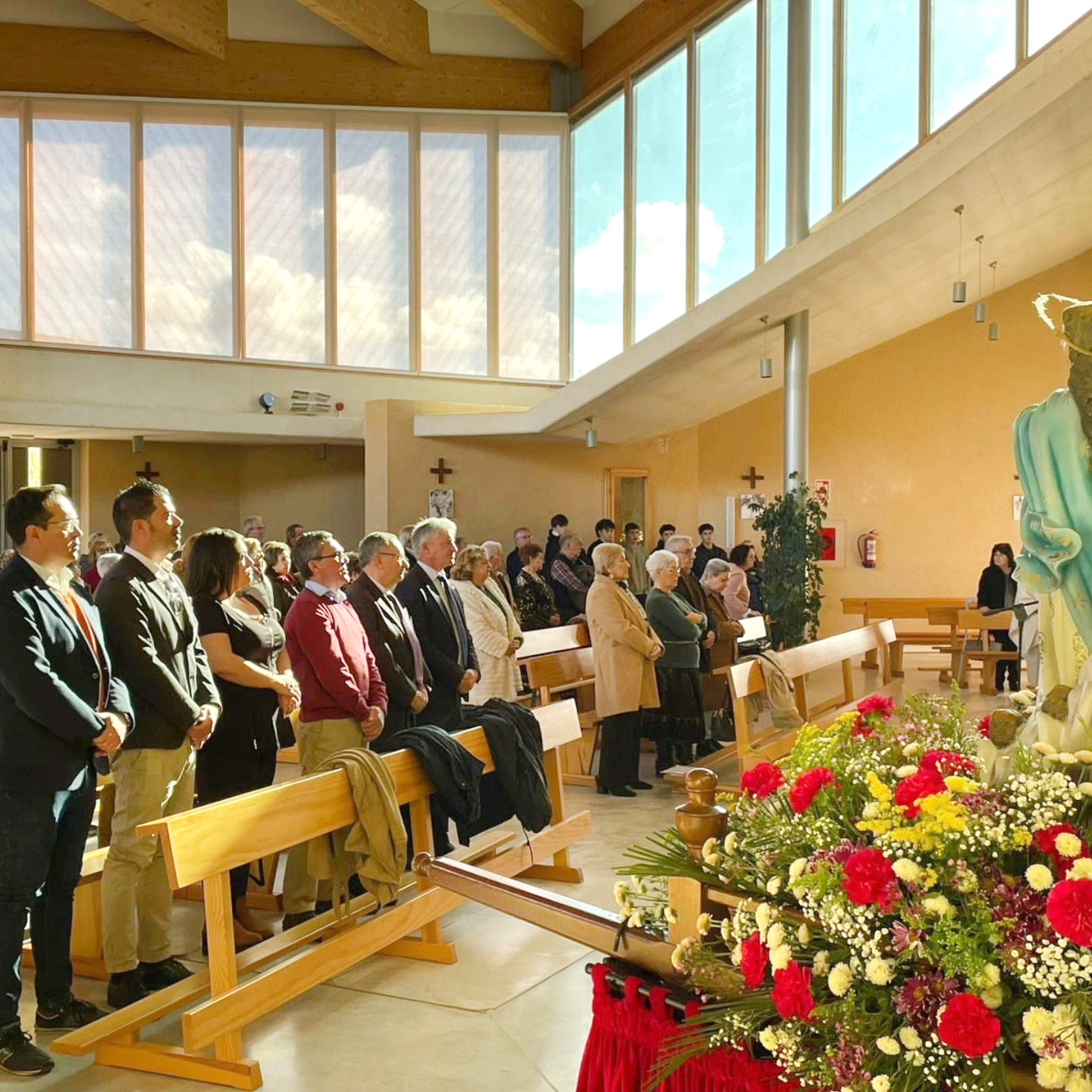 Los actos comenzaron con una misa en honor a la Inmaculada Concepción, que constituyó el momento central de la celebración. Tras la ceremonia religiosa, los asistentes disfrutaron de una comida de hermandad en la Plaza de Toros de La Flecha, organizada por la propia asociación junto con el Ayuntamiento, en la que no faltaron las conversaciones distendidas y los recuerdos compartidos. Para finalizar, se entregó a Rosario García Márquez, una placa distintiva, como vecina más longeva a sus 94 años.