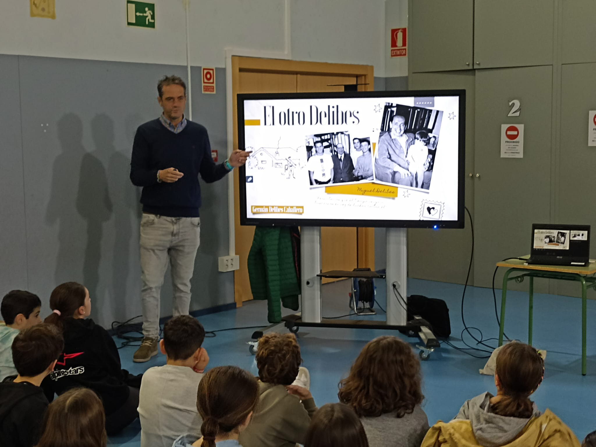 Por ello, el colegio ha recibido la visita de su nieto, Germán Delibes, quién les ha mostrado la faceta más familiar y entrañable del escritor a través de una estupenda presentación en la que han tenido la oportunidad de ver al escritor como padre y abuelo de una numerosa familia. Les ha acercado a sus libros, previamente trabajados en el aula, así como a sus aficiones y los parajes que marcaron su vida, como Sedano, Molledo y Valladolid. Les ha contado anécdotas familiares y personales que han mostrado al autor como un ser entrañable y realmente querido por sus familiares y amigos.