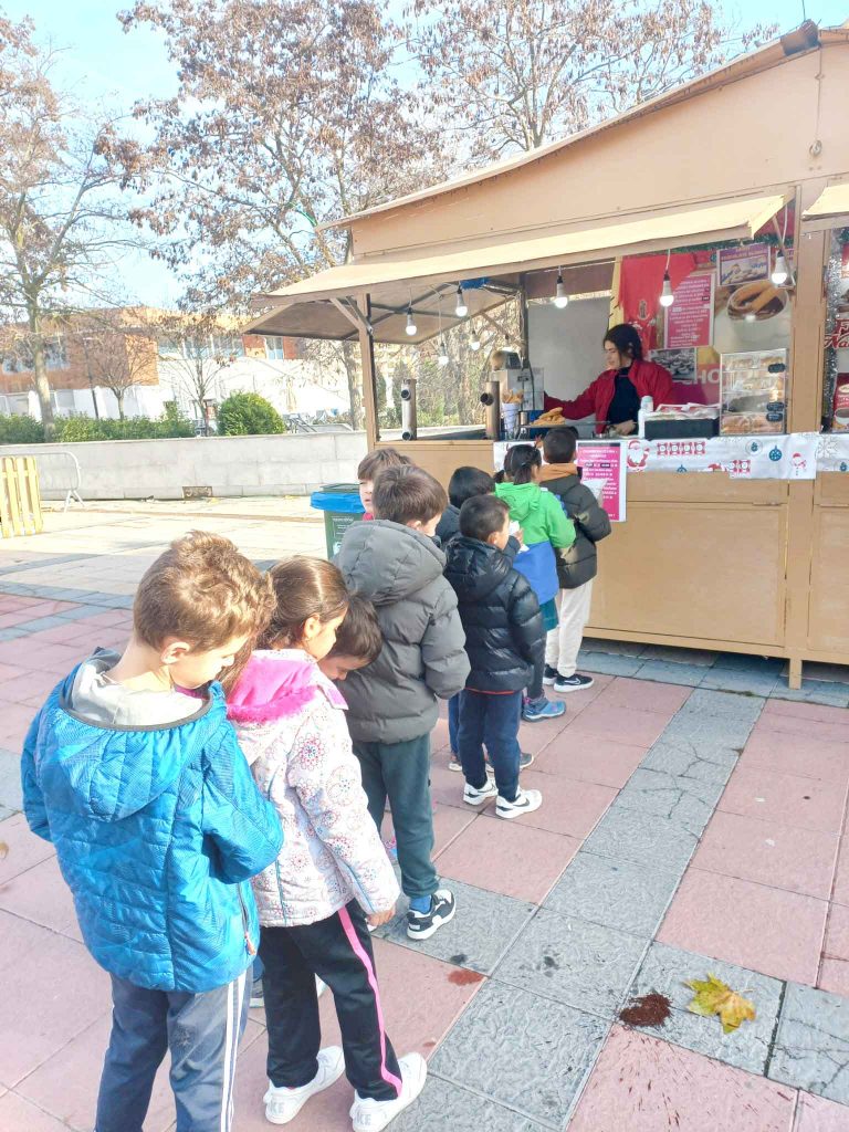 El alumnado de 2º de Primaria realizó una salida a la Plaza España, donde pudieron disfrutar de la decoración navideña, saborear chocolate con churros y mantener un encuentro con el alcalde de Arroyo de la Encomienda, reforzando así la conexión entre el colegio y la comunidad local.